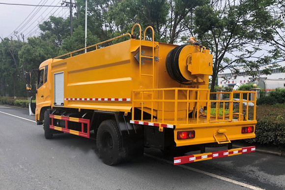配有高壓水泵的水罐車,清洗城市下水道的沉積物,疏通下水道。也可用于清洗工業(yè)排液管道、壁面等,并可兼作灑水、運(yùn)水和沖洗公路用,緊急時可用于救火。