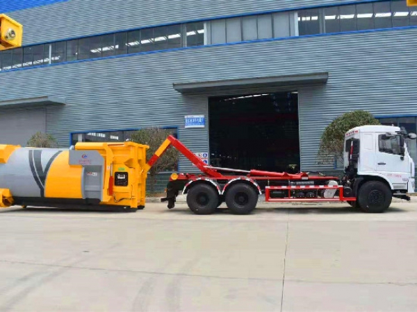 勾臂垃圾車【車廂可卸式垃圾車】車體和垃圾箱可完全分離,由液壓系統(tǒng)來(lái)完成收箱/放箱,在平日里可將車載垃圾箱放置到各個(gè)垃圾收集點(diǎn),待垃圾收集滿后,該車可直接開(kāi)赴收集點(diǎn),通過(guò)液壓系統(tǒng)的操控,可將垃圾車后座上加裝的勾臂放下,掛住站內(nèi)箱體前端的連接點(diǎn),將垃圾箱拉**車體的后座上,此時(shí)即可開(kāi)動(dòng)車輛,將垃圾運(yùn)送垃圾處理站內(nèi),進(jìn)行自卸式傾倒,優(yōu)點(diǎn)就是可一車配多斗,一輛車就可以維持?jǐn)?shù)個(gè)垃圾收集站的運(yùn)轉(zhuǎn),效率高,且箱體為密封式設(shè)計(jì),不會(huì)造成二次污染。