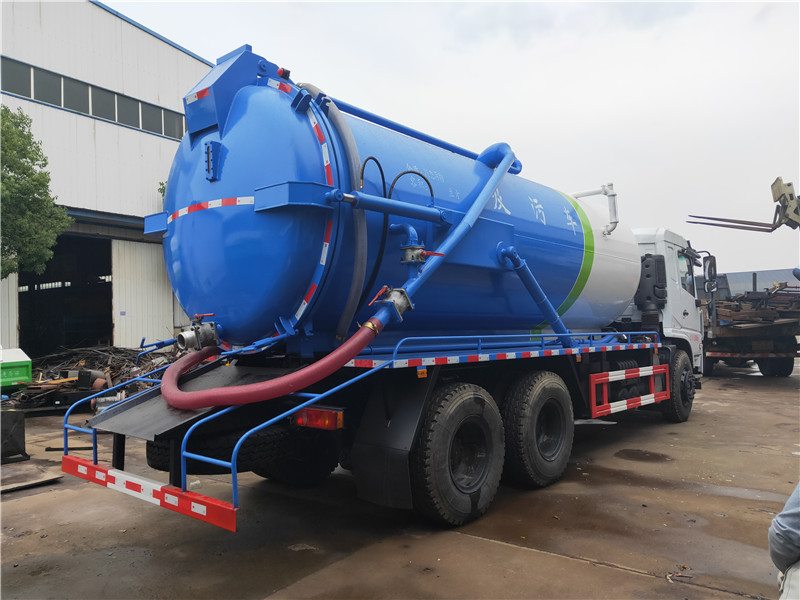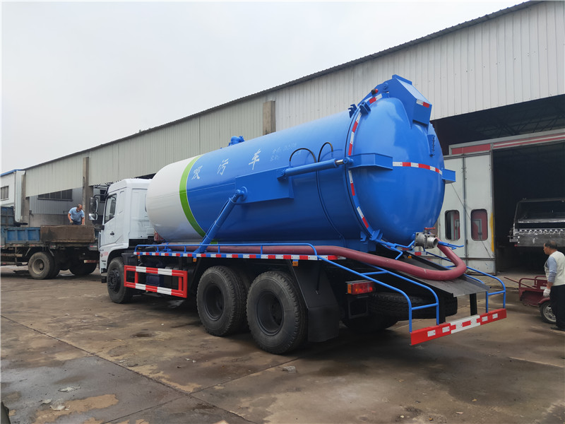 罐式吸污車(chē),罐體液壓油缸舉升卸料,后蓋液壓油缸開(kāi)啟鎖緊耐腐蝕密封條密封(保證了車(chē)輛的密封性運(yùn)輸中滴水不漏)。罐內(nèi)污物可通過(guò)液壓打開(kāi)后蓋舉升罐體直接傾倒,吸污車(chē)可自吸自排,工作速度快,容量大,運(yùn)輸方便,具有真空度高真空泵吸力大,吸程遠(yuǎn)等優(yōu)點(diǎn),特別適合用于含水污泥、化糞池-下水道內(nèi)的淤積物的抽吸、裝運(yùn)和排卸,尤其可 吸下水道泥漿、淤泥、石子、磚塊等較大物體 。(比吸糞車(chē)的吸力更大)、噸位大、效率高、用途更廣泛的特點(diǎn)。